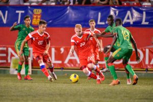 Salieron los rusos con las revoluciones altas y en el primer minuto del partido ya dispusieron de una primera ocasión de peligro a manos de Sevikyan, cuyo tiro se fue desviado. Instantes después, Suleymanov intentaba rematar una jugada de Saludaev, pero el balón se iba al lateral. Eran momentos donde el monopolio del juego tenía color rojo y el primer gol no tardó en subir al marcador. Sin embargo, no fue a través de una acción sobre el verde, sino que el 9 ruso se encargó de lanzar un penalti decretado por el árbitro tras la primera revisión del partido gracias al VAR. Corría el minuto 8 y los pupilos de Oleg Levin ya mandaban en el tanteo. Sin embargo, el gol tuvo un efecto inmediato que nadie podía esperar tirando de lógica: los rusos se confiaron dada su manifiesta superioridad y Mauritania comenzaba a aparecer sobre el césped, aunque la poca pólvora de sus hombres de arriba condenaba cada uno de sus intentos.