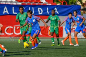 Apenas habían pasado quince minutos de juego cuando Ratanbala dio un gran pase a Manisha, que remató a puerta sin mucha oposición; Salimata Samba se estiró de manera espectacular y la detuvo. Aunque era el preludio de lo que vendría después, ya que en el minuto tres las indias se adelantaron gracias a un gol de la propia Manisha, que aprovechó el excelente pase de Grace Dangmei. Esta última, precisamente, se convertiría en la autora del segundo de las suyas, en una jugada que generó ciertas dudas por una posible falta. Buscó la remontada Mauritania, con una Meue Cisse muy activa. La ‘9’ mauritana tuvo hasta tres ocasiones en menos de un minuto, pero en dos de ellas se topó con las buenas intervenciones de Aditi, la tercera se fue fuera. La Selección de India dominaba el encuentro, incluso en los momentos con un menor ritmo. Su superioridad quedó patente con la jugada por banda derecha de Grace Dangmei, quien sirvió en bandeja el tercero para las indias: Bala no falló dentro del área. El cuarto no se hizo esperar, con las mismas protagonistas pero con los roles cambiados: Bala asistió a Grace Dangmei. El resultado al descanso pudo ser más abultado, pero las indias desperdiciaron varias ocasiones muy claras.