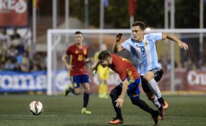 El jugador del FC Barcelona realiza el saque de honor tras ganar el europeo sub-19[...]