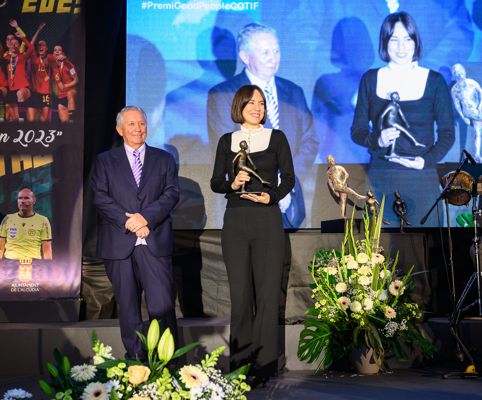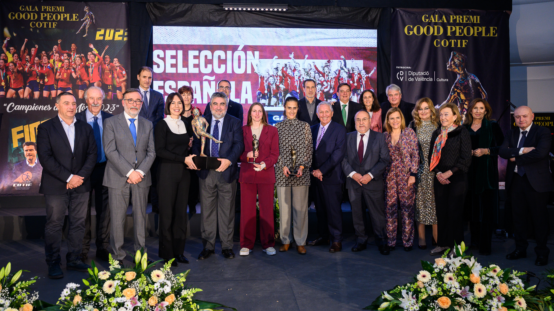 Las mujeres de la Selección Española de Fútbol vieron reconocida ayer su lucha por la igualdad y la justicia con el Premio Good People COTIF. Una representación institucional de primer nivel demostró el apoyo de la sociedad a las féminas de España, en una gala a la que acudió la seleccionadora, Montse Tomé, y la campeona del mundo Enith Salón para recibir el galardón. La Ministra de Ciencia, Innovación y Universidades, Diana Morant, que representó al Gobierno de España, estuvo acompañada por el exministro de Cultura y Deportes y recientemente nombrado Secretario de Estado para el Deporte, José Manuel Rodríguez Uribes. También por la delegada del Gobierno en la Comunitat Valenciana, Pilar Bernabé; el Director General de Deporte de la Generalitat Valenciana, Luis Cervera; el diputado de Cultura de la Diputación de Valencia, Paco Teruel; la diputada de Hacienda de la Diputación de Valencia, Laura Sáez; o el presidente de la Federación Valenciana de Fútbol, Salvador Gomar, entre otros.