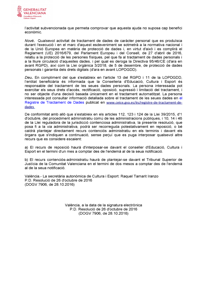 GENERALITAT VALENCIANA (Direcció General d’Esport)