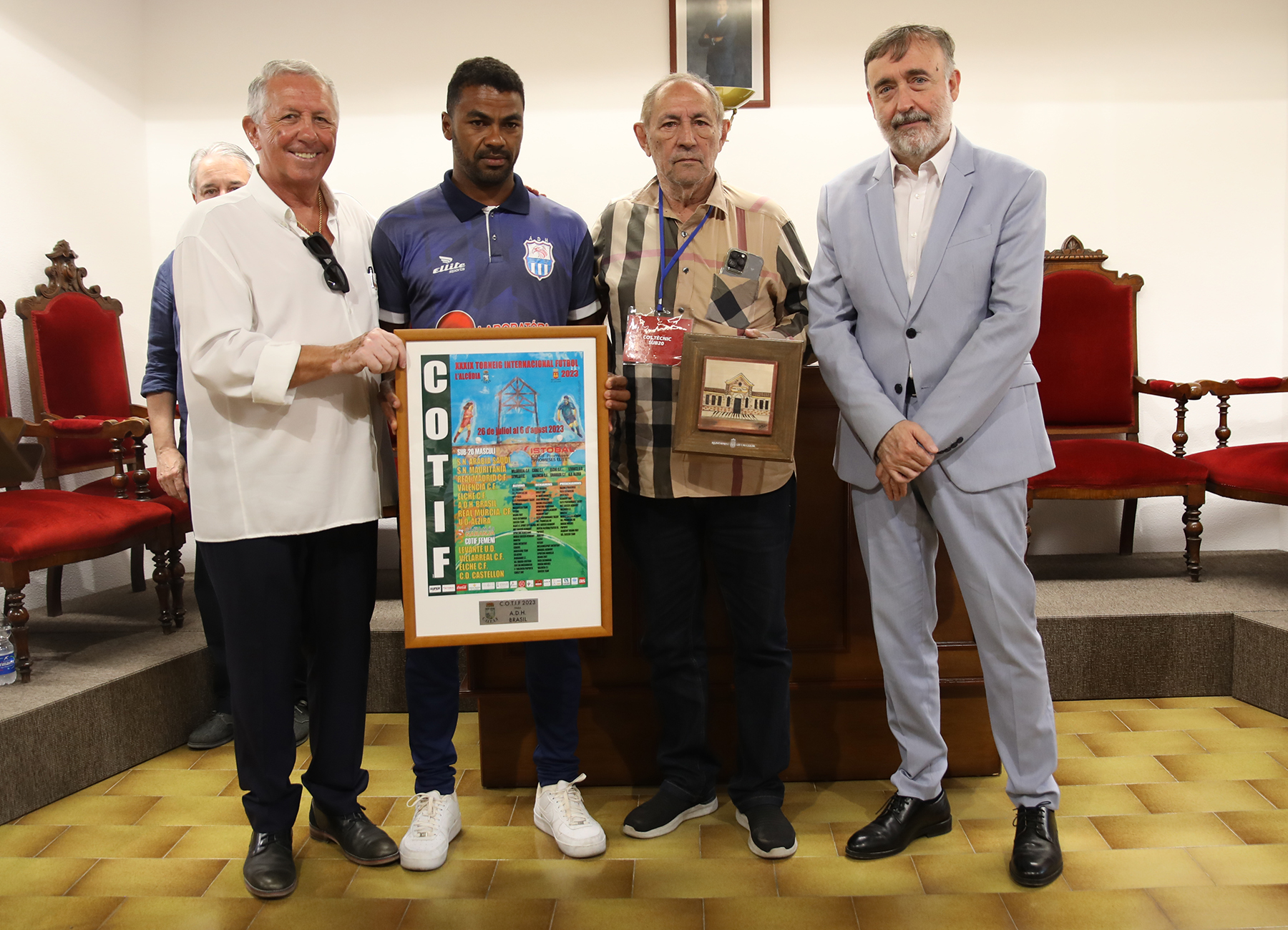 El Ayuntamiento de l’Alcúdia acogió el acto de recepción de los equipos participantes en la 39 edición del COTIF. Los clubs estuvieron representados por sus presidentes, directores técnicos y delegados, quienes tuvieron oportunidad de firmar el Libro de Honor y de dedicar unas palabras a los asistentes. Además, Eliseu Gomez (presidente del COTIF) y Andreu Salom (alcalde de l’Alcúdia) entregaron a los equipos un cuadro conmemorativo esta edición del torneo y un “socarrat” de l’Alcúdia.