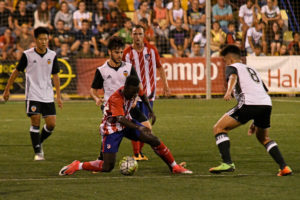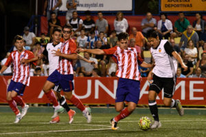 Un partido para la leyenda le permitió al Atlético de Madrid discutir como nunca ante el Valencia CF. De un duelo mayúsculo, con tanto hueso como buen fútbol, el equipo rojiblanco alzó al cielo de l’Alcúdia la copa de la XXXIV edición del COTIF. Y lo hizo en un momento simbólico por su fabulosa dimensión en todas las categorías, lo que revaloriza más si cabe su victoria en Els Arcs. Fue un encuentro sin tiempo para parpadear, con dos conjuntos llevados al sofoco casi inhumano, con dos partes y una prórroga muy igualadas. Un Atlético de Madrid incansable y un Valencia CF férreo. Al final, la tanda de penaltis dio la gloria al conjunto colchonero.