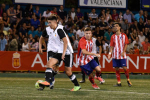 En el Atlético de Madrid de Manolo Cano, la seña del Cholo Simeone ha calado hondo. Su estrategia fue clara desde el primer minuto: presionar, robar y aprovechar los contraataques. Una especie de símil del primer equipo colchonero, pero en versión rejuvenecida. El Valencia CF, agresivo y punzante, como en las cinco citas anteriores. Desde el principio, ambos fueron un regimiento y se jugaron cada pelota como si fuera la última de sus vidas, siempre de forma gremial, como mosqueteros. Aun así, pese a que los valencianistas lograron hacerse con el control, esa condición no les valió para tener las más claras del primer tiempo. Precisamente, cuando mayor control y terreno había ganado el combinado valencianista, Roro y Andy dispusieron de una doble oportunidad en la que Emilio, cancerbero blanquinegro, tuvo que responder empleando sus mejores virtudes. La réplica apareció pasada la media hora y la protagonizó Esquerdo. El atacante se escoró a un costado y disparó, pero Álex terminó salvando a los suyos. A balón parado también hubo peligro. Andy y Kangin emularon sus lanzamientos, lo malo fue que los dos terminaron rozando el larguero.