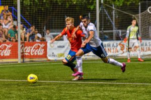 Duelo de candidatos a alzarse con el trofeo en la segunda jornada del COTIF. España se enfrentaba ante Rusia y sobre el césped alcudiano quedó patente que se pueden esperar grandes cosas de la Rojita. Los jugadores de David Gordo dominaron el partido de principio a fin y arrollaron a los rusos a base de buen fútbol y goles. Los tantos fueron obra de Diego Collado y Marc Tenas.