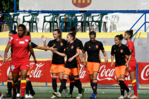 Valencia CF: 25 María Pí (1 Noe, m. 36); 4 Salo, 7 Joyce, 8 Leles, 9 Peiró, 15 Marta Castro, 18 Nata (11 Marian, m. 20), 20 Gio (6 Sandra, m. 50), 21 Andrea (17 Debo, m. 50), 22 Cubedo y 23 Gema.